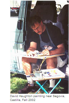 BIOGRAPHY David A. Haughton was born in Philadelphia, Pennsylvania in 1956 and moved to Canada in 1991. He has been exhibiting for over thirty years. In the mid 1980s, Haughton began defining an original artistic style. He captures the essence of what he is seeing with a quick sketch, then paints layer upon layer of glaze and scumble. Haughton has extensively painted the wild west coast of British Columbia with its stormy clouds, sparkling waters and ships at sea. Other series have captured the deep rich tones of Dordogne, Provence and Tuscany and the intense clarity of the light in Greece. He has exhibited in Zurich, Boston, New York City, Los Angeles, Seattle and Vancouver, and his work hangs in private and corporate collections worldwide. Haughton's artistic role model is the Japanese master Hokusai, who strove to keep learning and growing well into his ninties. He hopes to achieve a state where his "every line and dot on the page is alive". Other artistic heroes include Cezanne, Winslow Homer, Van Gogh and Goya: all primarily self-taught, independent and somewhat solitary artists with self-reflective tendencies. With the Kindertotentanz paintings, Haughton wrestles with the moral ambiguities of modern medicine (he trained as a medical doctor at Harvard College and Cornell University Medical College, and currently is a pediatric emergency doctor), mining themes akin to Goya's Disasters of War and Black Paintings. SOLO EXHIBITIONS 2007 Ships, Mountains and the Sea IV, Gallery O – Contemporary, Vancouver, BC The Kindertotentanz, The Art Center, Vancouver, BC Fragments of the Sea, CYA-Dikeme Gallery, Athens, Greece 2003 Simon Patrich Gallery, Vancouver BC 2000 Simon Patrich Gallery, Vancouver BC 1999 Simon Patrich Gallery, Vancouver BC 1998 Simon Patrich Gallery, Vancouver BC 1997 Simon Patrich Gallery, Vancouver BC 1994 Barrett-Post Contemporary Art, Vancouver BC 1993 Community Arts Council Gallery, Vancouver BC 1992 Simon Fraser University, Vancouver B.C. 1990 Mission West Gallery, South Pasadena CA. 1983 Galerie Tuchfabrik, Wadenswil (ZH) Switzerland 1981 Treffpunkt Galarie, Zurich Switzerland Belltower Gallery, The Riverside Church, NYC Samuel J. Woods Library, NYC 1979 Reformierte Kirchgemeindehaus, Kilchberg (ZH) Switzerland 1978 Hilles Library, Harvard College, Cambridge MA GROUP EXHIBITIONS 2009 PULP, Gallery 110, Seattle, Washington |