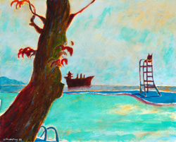 ![]() click to enlarge View from the Pool I 16 x 20 inches, acrylic on multimedia artboard Collection of the artist, 1997 |